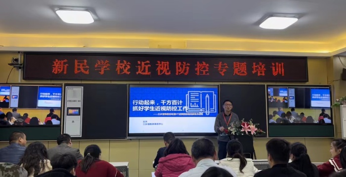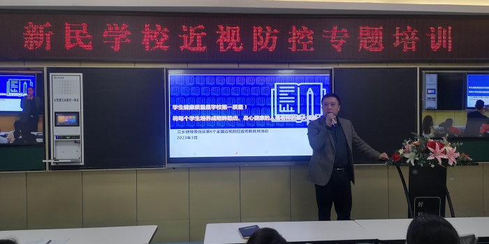 2023年3月是我国第6个“近视防控宣传教育月”。为了进一步营造近视防控宣传教育氛围,共同呵护好孩子们的眼睛,让孩子们拥有一个光明的未来,3月31日晚,责任督学、中山市学校健康教育百师宣讲团副团长刘杰校长莅临中山市三乡新民学校,为全体教师作了《行动起来,千方百计抓好学生近视防控工作》的专题讲座。