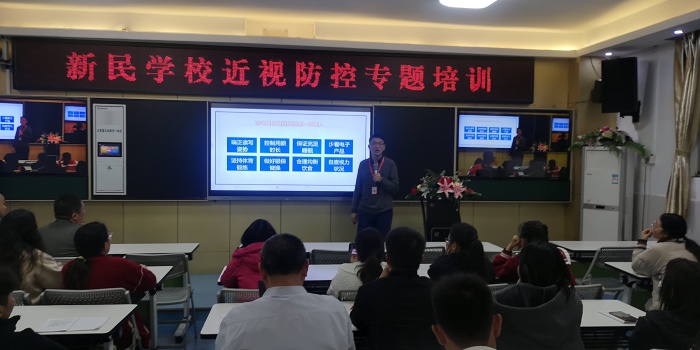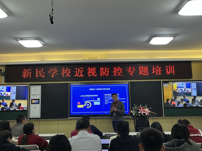 最后,新民学校林文海校长在总结中由衷的感谢刘杰校长为大家带来的这场如沐春风的专题讲座,并感谢刘杰校长为学校视力健康管理工作的悉心指导。林校长倡导全体教师一起行动起来,在家访活动中和家长共同探讨、监督、呵护孩子们的视力健康,让新民学子都拥有一双健康,明亮的眼睛。