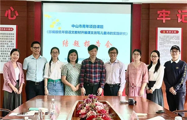 11月17日,中山市青年项目课题《部编版低年级语文教材开展课文改写儿童诗的实践研究》结题报告会在三乡镇白石环小学成功举行。前中山市教研室陈春艳副主任、小榄镇教研员李威老师、三乡镇教研员王建国老师等应邀出席报告会并做鉴定指导。三乡镇白石环小学校长刘世礼及课题组全体成员参加了报告会。