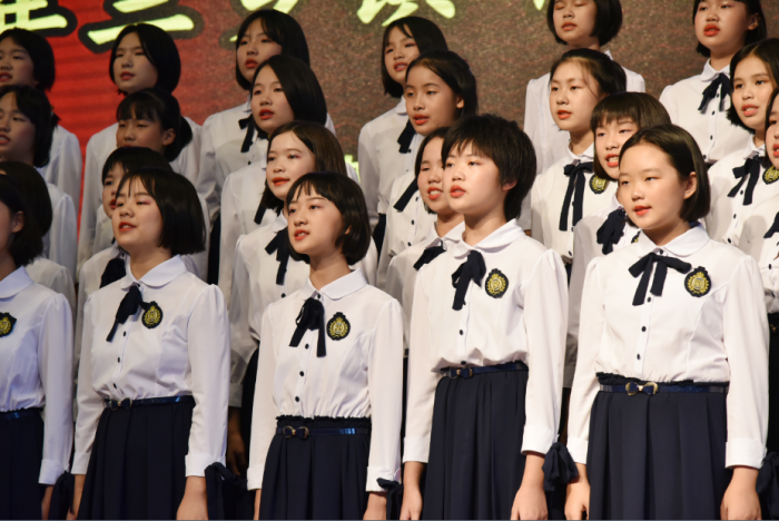 此次合唱比赛,充分体现了同学们的团队协作精神和勤奋努力的优良作风。备赛之时,学校合唱队经历了近两个月的紧张排练,付出了大量了时间与精力。终功夫不负有心人,合唱队在比赛中取得了第二名的佳绩。身穿白色制服的队员们带着自信的步伐登上舞台,在黄高觉老师出色的指挥下,钢琴手优美地敲响一个个琴键,台上的小小歌唱者们完美发挥,姿态优雅的她们,以充满着自信的脸庞配上那悠扬歌声,每一句歌词似乎都能深深打动在场观众和评委的心。台上一分钟,台下十年功。自然流畅的表演,凝聚着老师和队员们智慧与汗水。