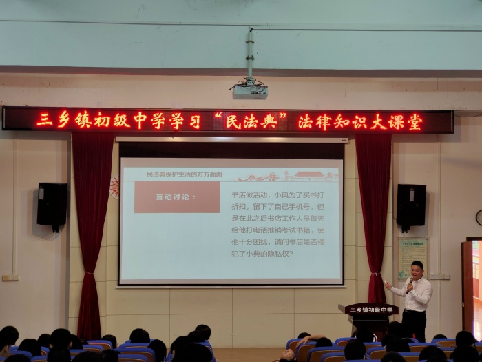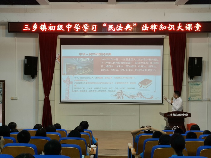 三乡中学将以此次《民法典》宣讲活动为契机,继续贯彻落实“法律进校园,为学生成长保驾护航”等精神,开展法治教育课程、法律知识竞赛和学术研讨等活动,进一步提升学校普法教育和依法治校水平,将法治校园建设真正落到实处。