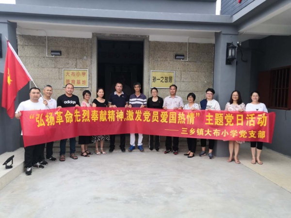 7月1日,三乡镇大布小学党支部在简艳书记的带领导下,组织全体党员到大布村开展“弘扬革命先烈奉献精神,激发党员爱国热情”主题党日活动,重走大布红色之路,以此来庆祝中国共产党建党99周年。