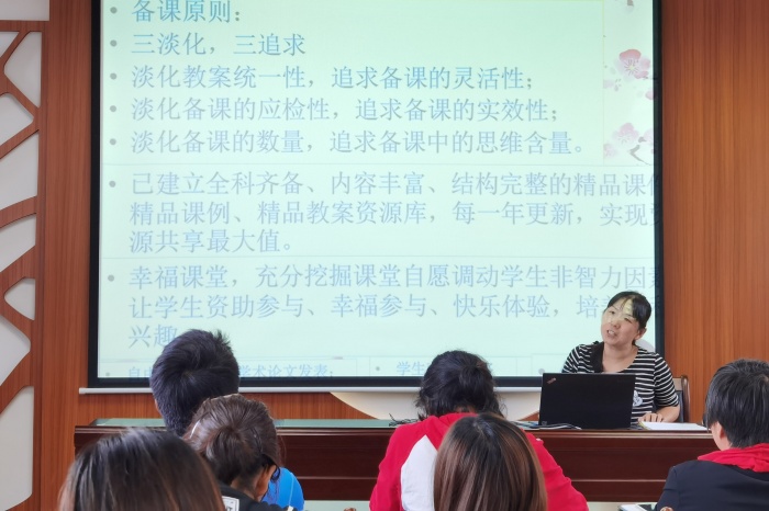 首先是语文科组长李辉燕老师对语文科组在这次素质教育检查中的表现进行一个反馈和小结。李辉燕老师分享了四个字:努力和合作。每一个语文老师在这次检查中,都卯足了劲。在每一次的放学后,在每一次的课间,老师们抓住零碎的时间备课,商讨上课的每一个环节;在一次次的试教、推翻、修改中不断完善教学设计。备课过程中的点点滴滴,体现的是语文科组老师做事的认真,对专业的精益求精。团队之间的相互帮助,共同合作,促进了老师们自身的发展。正是他们不平凡的努力和相互合作让课堂变得更加精彩。反思这次素质教育检查,李辉燕老师还思考了如何做会更有效:1、善找名师;2、会找资源;3、阅读更多书籍;4、做生活的有心人,积少成多,聚沙成塔。