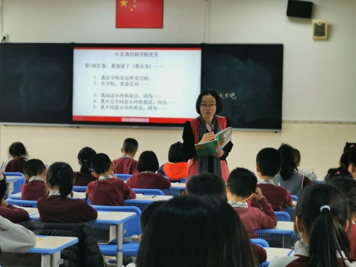 肖志红校长始终认为学生才是课堂的主体,应给学生思考的空间,展示的舞台,因此,这节课始终以学生自学、汇报为主,贴近学生的生活实际。以小组汇报为主的课堂形式,大大提高了道德与法治的课堂教学效率,锻炼了学生的学习能力。