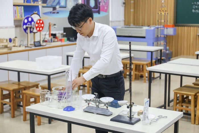 这离不开张剑杰老师对专业孜孜以求的精神。为了更全面的悟透小学科学教学的内容,张老师利用课余时间研读了整个小学阶段的12本小学科学教材以及小学科学课程标准,并对整个中学阶段的物理、化学、生物、地理学科内容也进行了全面的学习、复习;为了引导学生更加科学严谨地开展实验研究,张老师还把所有的中小学涵盖的所有理化生实验都进行了回顾与实操;为了上好一节课,张老师的教学设计往往数易其稿,试教多次。在一次次磨砺中,一步步成长,锤炼出了扎实的学科基本功和出色的课堂教学能力。