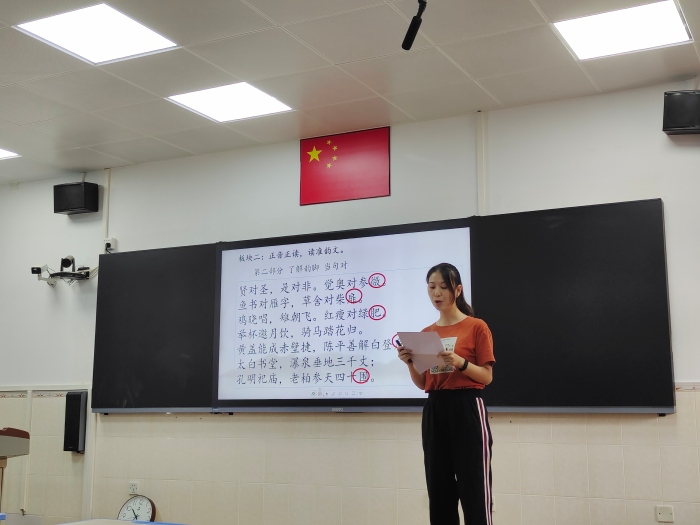16日,组内初赛如期举行。13节课,13种风格;13位青年教师,13种看家本领。授课内容均选自国学启蒙、经典诗词等中华优秀传统文化。有的老师运用视频、图片等多媒体手段,带领学生走进诗词,感受诗词的韵味;有的老师深挖文本,由朗读到吟诵再到配乐吟咏,由浅入深,引导学生读中悟,体会诗人的心境;有的老师从实际出发,提举生活实例,让学生在生活中接受传统文化的熏陶,让传统美德如春风润物细无声般地浸润孩子的心田。执教的老师扎实的课堂基本功、丰厚的文化底蕴以及灵动的课堂设计让人印象深刻,课堂效果可谓精彩纷呈。