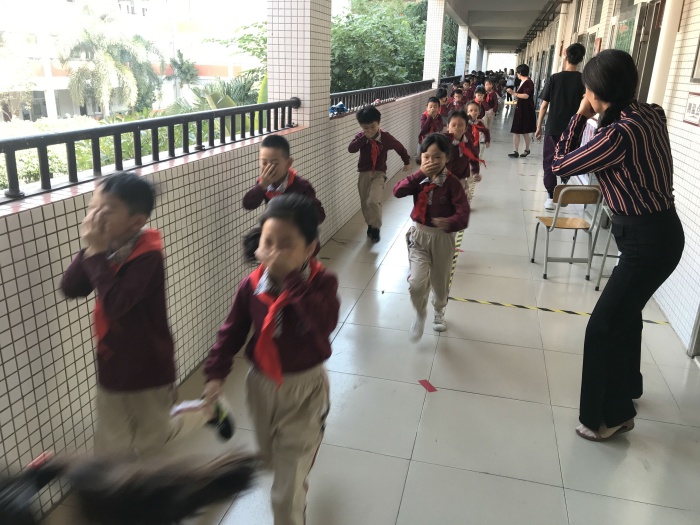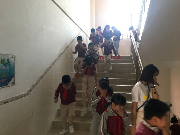 上午10:00,随着“呜呜……”应急警报声的响起,演练正式开始。各年段负责人及各楼梯口值岗老师第一时间到岗,协助学生队伍快速、有序的撤离;各班主任、任课教师指导学生弯腰慢跑,同时用手帕等捂住口鼻,跟着队伍迅速撤离到指定的安全区域。整个过程师生都能做到有秩序、快速,没有出现混乱的场面。演练结束后,各楼层负责人第一时间将应急疏散情况反馈给陈文丽主任,并对各项细节问题进行小结。这次的消防应急疏散演练活动进行得很顺利,安全撤离用时2分40秒。