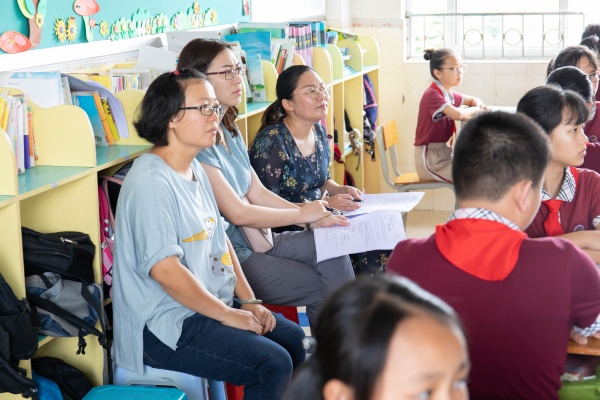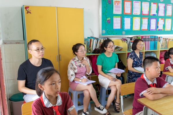调研组首先齐聚二楼教师阅览室,听取肖志红校长《从心出发,走向通达》的专项工作汇报。肖校长从文化渗透、具体举措、活动搭台这三大板块全面汇报了学校的心理健康教育工作。新圩小学把“水润文化”融合进日常的心理健康教育工作,塑造学生坚韧通达的心理品质,给调研组成员们留下了深刻印象。数量众多的心理疏导个案也让在座的专业人士频频点头。