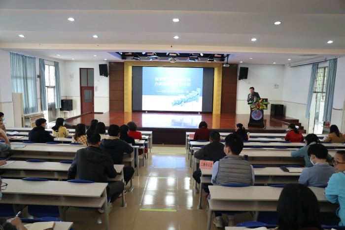 开学即开战,起跑即冲刺!龙朝晖校长做了题为《做幸福上进的好老师 办高质量的乡村学校》的开学工作报告。校长带领全体教师学习了广东省教育厅党组书记朱孔军同志的讲话《 实施科教兴国战略 开创广东教育事业新局面》以及教育部等十三部门下发的《关于健全学校家庭社会协同育人机制的意见》。提出了“做幸福上进的好老师 办高质量乡村学校”的办学目标,新学期要以高质量的党建工作为重点,以高质量的教师专业发展为核心,以高质量的课堂教学为抓手,以提高家校社协同育人质量为途径,大力提高育人质量,努力探索粤港澳大湾区一体化背景下的高质量乡村学校办学模式,在实现学校高质量发展的征途上实现新的跨越。