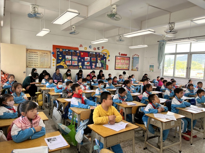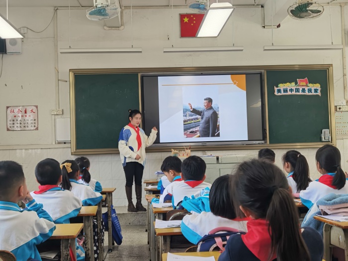 本次汇报课以《习近平新时代中国特色社会主义思想(学生读本)》为主题内容,课堂要求需要学生通过参与体验活动,在活动中让学生对习近平的“金句”有认知,并深化为行动。汇报课中,四位老师都以最佳的状态展示了自己的备课成果。吴少媚师傅指导杜丽娜老师上《美丽中国是我家》。孩子在杜丽娜老师的引领下了解祖国、赞美祖国并以自我身体力行去建设祖国。