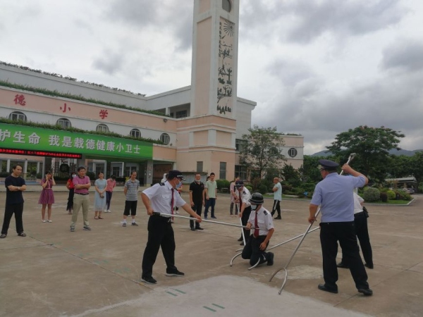 为了提高学校应对突发事件能力,全面提升学校安保人员和教职员工的安全意识和应急能力,进一步构建和谐平安校园,2020年6月9日三乡镇载德小学结合学校实际情况,开展了安保应急处置演练。
