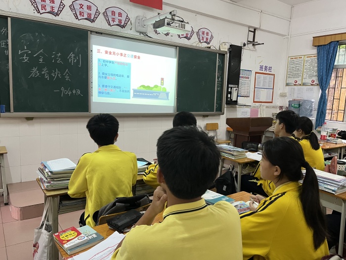 第二部分是法制教育。首先是禁毒教育,毒品是全社会的公敌,禁毒教育要融入到学生的日常教育中,特别是初中生,要多交益友,不受不良诱惑,不进入不适宜未成年人进入的场所,洁身自好。然后是预防未成年人违法犯罪教育,未成年人的不良习惯,如果不加以纠正,往往就会转化为违法犯罪行为,比如打架斗殴、小偷小摸等行为,老师以案说法,用一个个痛心的案例来警示同学们,心中对法律要常怀敬畏之心。