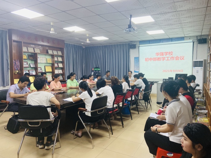 9月9日晚,华强学校初中部全体教师集中在学校会议室,召开教学工作会议。会议由主管初中部教学工作的周波主任主持。