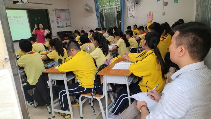 督导组一行来到学校后,对照课表,随机选课,走进教室,推门听课,并且也不固定班级,走班听课,这种方式能感受到最真实的原生态课堂。虽然不是一节完整的课,但可以窥一斑而见全貌。从课堂板书设计、学生的状态、班级学习氛围等方面可以洞察一堂课的学习效果。各检查组成员边听边对照评课表打分。
