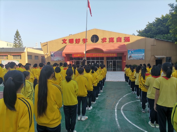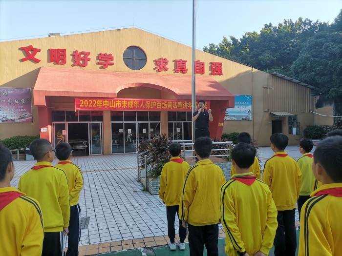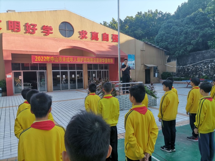2022年10月12日,华强学校邀请中山市沙溪镇云汉小学李荆校长,为全校师生上了一堂生动的法制教育课,主题是——《中华人民共和国未成年人保护法》视域下的“六大保护”。
