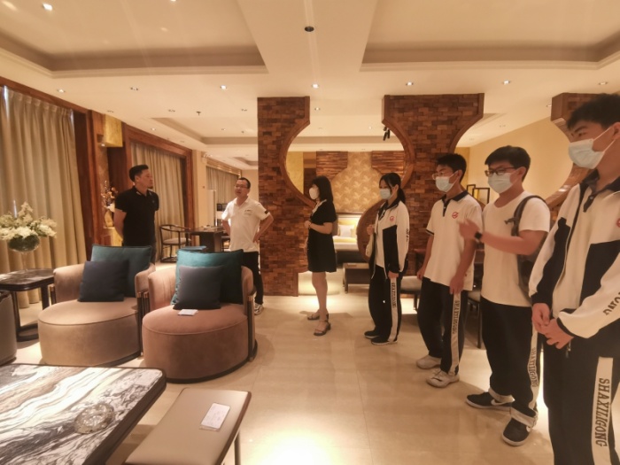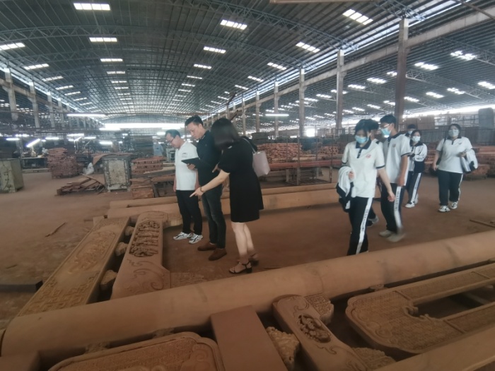 5月24日下午,应佛山市华行红木家具有限公司董事长、沙溪理工学校首届毕业生黄岸峰的邀请,沙溪理工学校陈国成、邱雅馨、张慧老师及部分室内工作室学生到公中山大涌的公司总部工厂进行实践交流,了解大涌红木整装家居生产情况,与公司姚从超总经理就人才培养、学生就业、合作方式等事宜进行深入探讨,旨在为进一步推进服装设计与工艺专业群“双高”建设,助力当地产业升级转型。