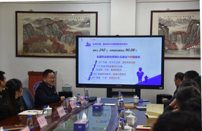 冯子川首先代表沙溪理工学校对现代职校一行来访人员表示热烈欢迎,也高度肯定了他们在“双高”建设中取得的成绩,并介绍了沙溪理工学校的建校背景、学校发展、教学改革以及高水平建设的发展历程。随后,又详细介绍了高水平中职学校的建设方案,从建设基础、建设思路、总体目标、标志性成果、十大任务特色、两大专业建设等方面阐述了沙溪理工学校在项目申报后一系列建设工作,分享了在实际建设中取得的成绩和经验,也提出过程中存在的问题与不足。