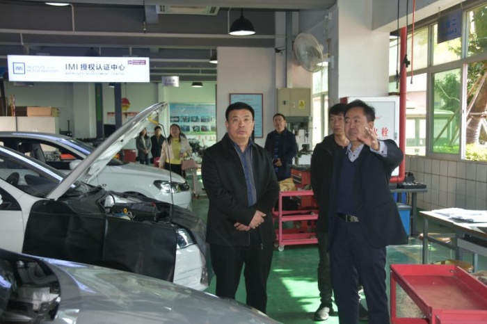 6日上午,交流团一行在冯子川的引领下,先后参观学校服装技术部、信息技术部、汽车技术部等专业的校企合作工作室,深入了解校企合作产教融合的工作室课堂,充分了解学校的办学理念、产教融合、校企合作、文化建设等方面的特色经验。