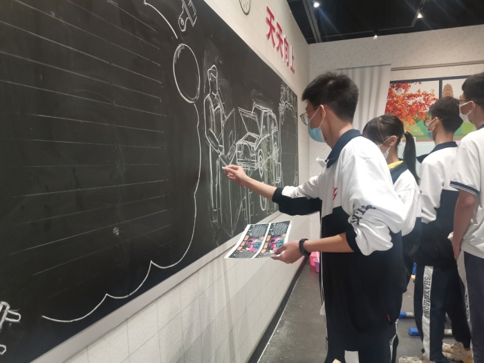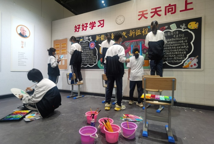 中山市博物馆联合市教育和体育局筹划并举办“书声满香城——中山教育特展”,向公众展示中山文教历史,展现香山建县以来的文化教育成果,助力文化兴城。10月19日下午,中山市沙溪理工学校受中山市博物馆邀请进行黑板报创作,打造展览的互动打卡空间。