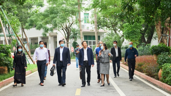 姜术俊一行先后深入学校汽车技术部、创意设计部等实训场室、学生宿舍、饭堂等地方实地考察,了解学校发展中遇到的困难和存在的短板,边参观边交流意见。