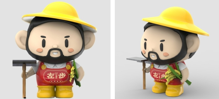 据李杏华老师介绍,此项设计历时近三个月,为教学实践项目,属于公益性质设计教学活动。在李杏华老师带领下,文创设计工作室学生通过开展市场调研、了解企业需求,结合中山南朗地域发展现状和需求,开展设计项目的教学实践。作品历经图形创作阶段、CorelDRAW矢量图形绘制、3D模型建模、KEYSHOT效果渲染、3D打印模型手办等一整套流程的设计,多次跟企业沟通,反复测试、修改,终于设计出企业较为满意的左步卡通农民IP形象。
