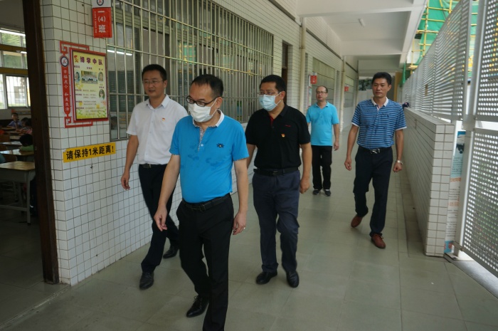 在调研中,黎委员一行重点检查了学校防疫准备、开学工作和新扩建教学楼进展等情况。黄金奇校长详细介绍了学校的办学历史、办学特色、疫情防控准备、开学情况等方面工作的情况,重点介绍了扩建工程进展情况和学校在传承隆都地域文化精髓方面所做的工作。