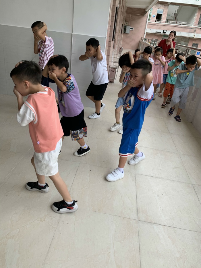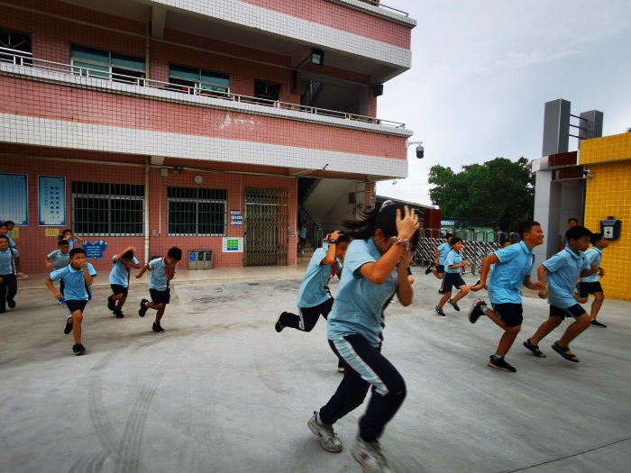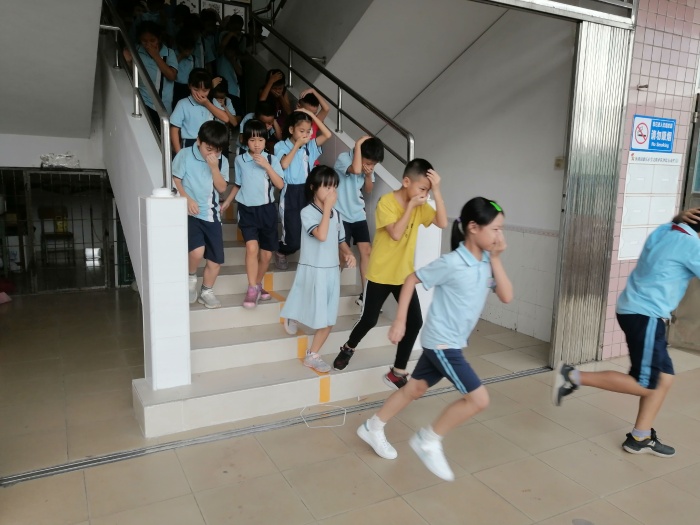 下午2:30开始,为保证演练的安全、有序、顺利进行,学校要求各位班主任用20分钟时间,先进行演练要求讲解,通过网上安全教育平台对学生进行安全知识教育。当警报响起后,全体教师在下级行政的指挥下立即就位,迅速赶往各楼梯口和转弯处,组织学生进行逃生演练。各班主任迅速组织本班学生从前后门出教室,形成一个动态组队、撤离的局面。在逃生过程中,同学们按要求弯腰大步行走或小步跑,同时一手用手帕或衣袖、衣襟等捂住口鼻,另一手挡在头顶上。按规划好的疏散线路下楼,迅速,有序,安全地紧急疏散撤离教学楼,到达空旷操场上指定的地点集中。全体师生到达指定地点只用了1分20秒,跟上几次的演练时间齐平,疏散演练井然有序未发生任何问题,达到了预期的效果。