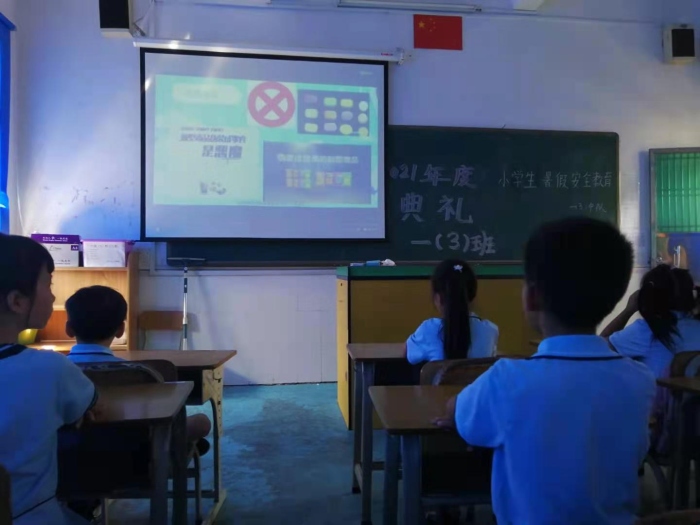 散学典礼结束后,同学们回到教室,由班主任组织观看了由中山市教育和体育局、中山市检察院制作的视频《小学生网络安全》《守护花开》和《儿童安全教育》,针对儿童在假期里如何落实疫情防控要求,怎样应对交通事故、火灾等突发事件,如何避免成为网络安全受害人,如何在假期保护好自己等问题一一解答,提醒大家安全无小事,平平安安过暑假。