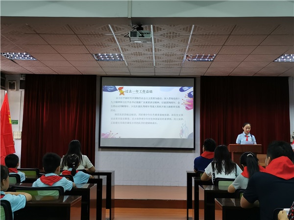 大会在激昂的少先队队歌声中拉开序幕,少先队员代表关子钧、张晓怡两位队员也向全体队员发出号召,要热爱祖国,好好学习,为了祖国的繁荣,为了民族的振兴,向前,向前。接着是大队长关子钧对学校少先队在本学年的工作用视频的形式做了全面的回顾和总结,同时也及时地反思了自己的不足和存在的问题,展望未来会做得更好。