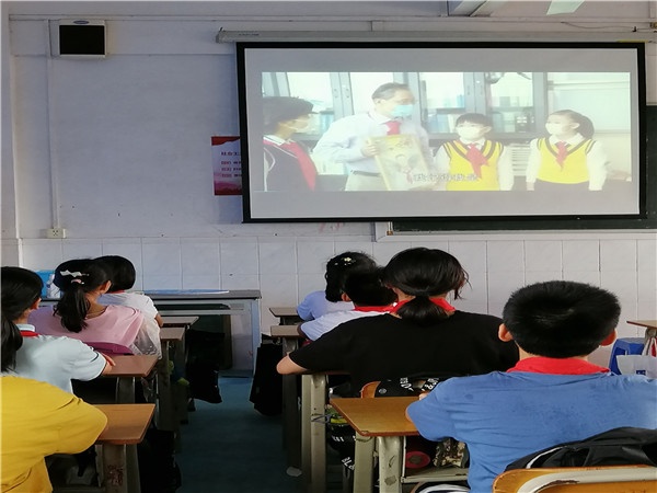 接着,下午各中队收看广东省少先队活动“云队课”《守护生命的对话》视频,继续重温疫情期间,一个个感人的故事!一个个美丽的身影。是这些平凡又伟大的“逆行者”身影,在人民心中筑起了高高的宝塔。在困难面前,再次彰显了党中央的坚强领导和中国特色社会主义制度的显著优势。有全党全军全国14亿人民的团结奋斗,一定能够战胜这场疫情。