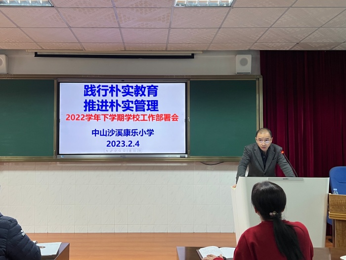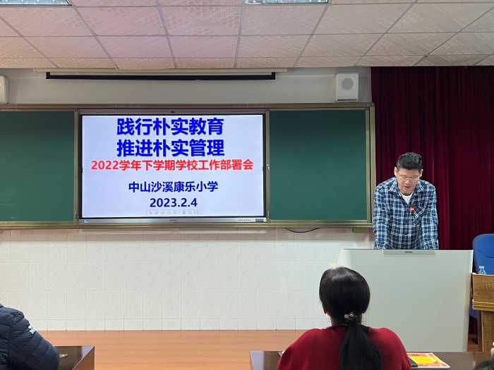 兔年东风春来早,扬帆奋进正当时。为确保新学期开好局、打好底、起好步,进一步统一思想、凝心聚力,2月4日上午,中山沙溪康乐小学在学校报告厅召开题为《践行朴实教育,推进朴实管理》2022学年下学期学校工作部署会,全体教师参加会议。