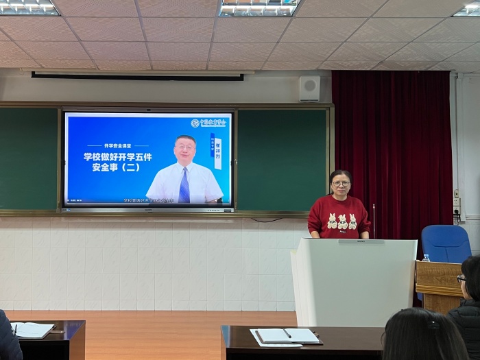 第二议程是进行“教职工开学安全第一课”及防疫工作要点提示会。吴校长要求全体教师高度重视开学安全工作,明晰各自职责,加强健康状况摸排,对校园进行全面清洁消毒,慎终如始地抓好疫情防控工作, 确保春季开学安全平稳有序。