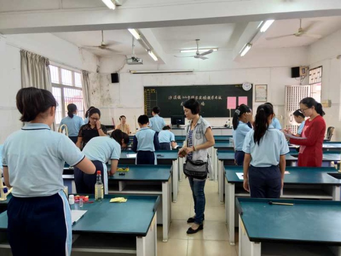 上午8点,在各班班主任的协助下,学生们安静地在候考室排队抽签,进入考室,领取试卷,开始考试,每个环节都井然有序地进行着。同学们有礼貌、有方法、有步骤地把每个实验考核尽可能完美地呈现给监考老师,沙溪镇科学中心教研组长高瑞红老师对学校的组织工作以及学生能熟练地进行实验操作给予了肯定和好评。