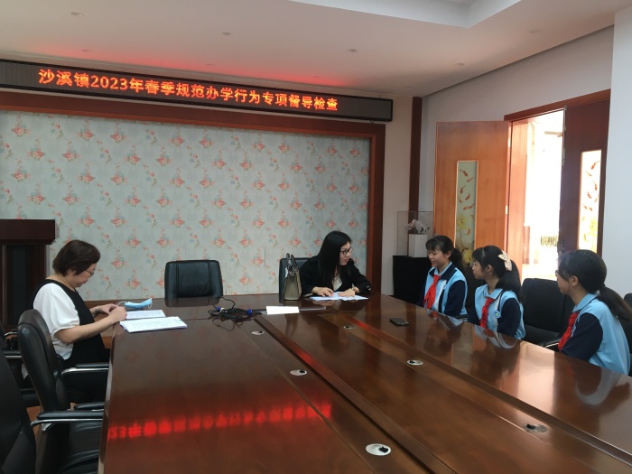 为落实国家“双减”政策要求,加强中小学规范办学行为管理,根据《沙溪镇2023年春季规范办学行为专项督导检查的通知》要求,3月9日上午,由沙溪中学副校长肖林森、申明亭学校主任黄枚玉、濠涌小学主任雷艳组成的沙溪镇规范办学专项督导检查组,到龙瑞小学开展2023年春季规范办学行为专项督导检查。龙瑞小学高玉璇校长、杨飞羽副校长接待了督导检查组成员。