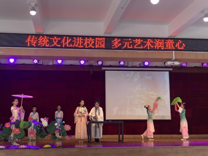 何校长对学校的历史渊源进行了精彩的解说,接着大家在礼堂欣赏了精彩诗词节目——《爱莲说》。该节目体现了龙头环村的文化底蕴,将周氏之祖周敦颐先生高洁的品格,融于诗词舞乐之中,让大家在美的体验中感受传统文化的魅力。同学们精彩的表现得到督导专家的积极肯定。接着,在何校长的指引下,督导组在学校足球场欣赏了一出别出心裁的民族舞蹈《瑶山趣娃》。舞蹈体现了传统文化博大的包容性,也是龙头环学校多元艺术理念的最佳体现。