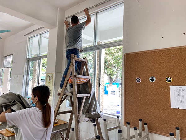 活动中,志愿亲子及老师们认真清理班级和校园的各个卫生死角,家长义工们有的擦窗户,有的清扫风扇,有的清除班级门前花丛中的垃圾纸屑和大堂的落叶,忙得不亦乐乎,校园里尽是洒满了汗水的欢声笑语。在大家的共同努力下,整个校园焕然一新。