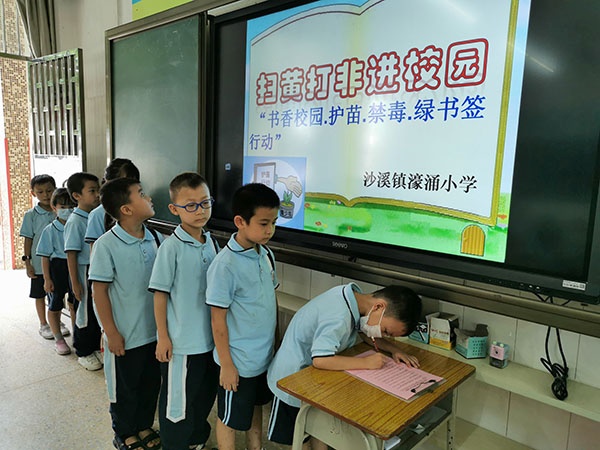 为了让少年儿童受到优秀文化滋养,大力促进政府、社会、学校、家庭协调一致携手保护未成年人健康成长,珍爱生命珍爱自己,抵制有害出版物和信息的侵染,提高安全意识,防止网络诈骗和欺凌事件的发生。2020年6月15日,沙溪镇濠涌小学少工委组织各中队开展以“扫黄打非进校园—书香校园.护苗.禁毒.绿书签活动”为主题的少先队活动,大力倡导绿色阅读、文明上网理念,引导少年儿童爱读书、读好书、善读书,自觉抵制非法出版物和毒品。