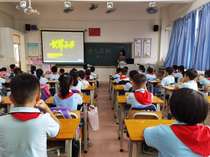 主题班队课上,各中队辅导员向队员们讲述了有关“九一八”那段苦难屈辱的历史,日本帝国主义悍然侵略中华的史实,以及“九一八事变”引发全国人民的强烈愤慨和反抗的历史经历。队员们通过辅导员的讲述,观看纪录片,进一步了解了日本侵略者在中国犯下的滔天大罪,以及中国最终取得抗战胜利的艰难历程,队员们深深地感受到今天的幸福生活来之不易,从而加倍珍惜现有的和平生活。