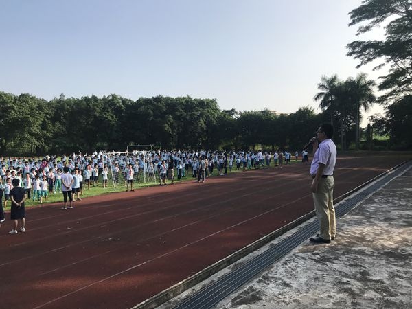 急促的警报声响起后,各班以最快的速度按照计划路线迅速撤离教学楼,到操场集中。各年级行政、级长、班主任、科任老师分布在各层楼楼梯口、操场斜坡处进行疏导,指挥学生有序撤离,不要推拉拥挤,避免摔倒、踩踏。同学们在老师的引导下,严格遵守秩序,谨记科学规范的逃生动作,齐心协力做好演练。只用了3分钟,全校一千多名师生就安全撤离到操场。到达操场后,各班立即清点人数、整理好队伍,开始认真聆听黄贤军校长讲话。黄校长表扬了孩子们的出色表现,强调当危机情况发生时,孩子们一定要冷静科学地自救。平时在校园里也要注意安全,严格遵守学校的各项规定,从而保护自己和别人不受伤害。黄校长还提醒老师们,要切实抓好学生安全教育工作,绷紧安全之弦,一刻都不能放松。每天值日的老师在岗位上要细心观察,及时制止学生课间不安全行为,发现并排除安全隐患。演练结束后,各班排着整齐的队伍有序回到班级。