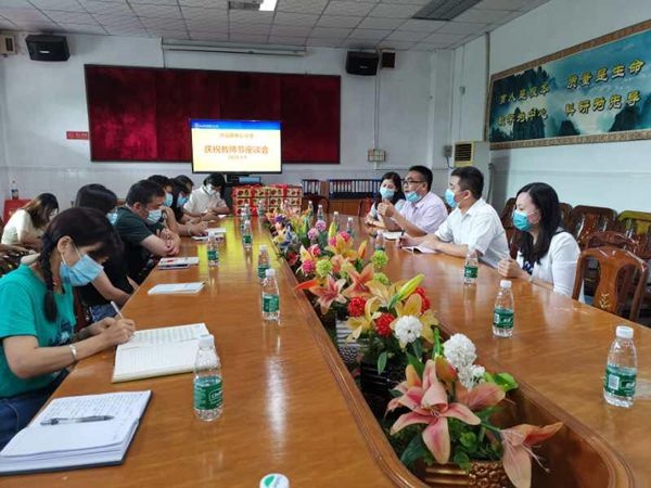 沙溪镇卫计局的傅娟娟局长在座谈会上除了送上节日祝福,并对学校和老师们在新冠疫情防控工作做出的贡献表示感谢。她希望老师们加强对孩子心灵成长的关注,培养身体健康、心灵快乐的学生。镇教育指导中心的阮秀迎老师也送上了亲切的节日慰问。