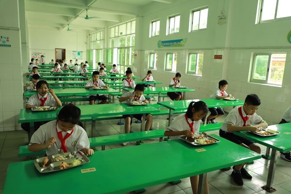 接下来,孩子们上了期待已久的各科课程,十分愉快。下课后,广播里传来温馨的提示语,孩子们有秩序地上厕所,前后两堂课的老师做到无缝对接。上午11点左右,学校顺利通过市纪委复学督察组的检查,完善的复学准备工作得到领导的肯定。中午,全校同学错峰用餐,在老师的引导下,排队间隔1米以上,固定位置,不交谈,吃完有秩序地离开。每班吃完,食堂工作人员立即对桌椅进行消毒。整个过程安排保障了同学们的安全万无一失。午餐以后,孩子们在老师的组织下回教室午休,在集体的大家庭里睡得很香。