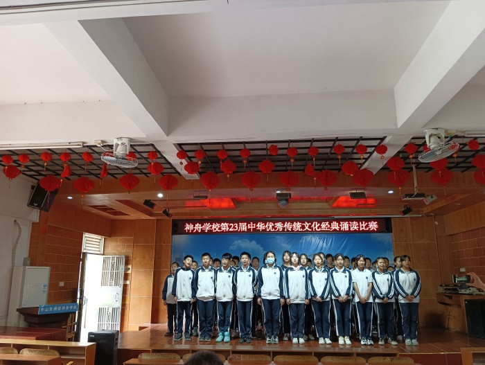 2022年5月30日星期一,中山市神湾神舟学校,在学校多媒体室,组织全体学生举行了“第23届中华优秀传统文化经典诵读大赛”。神舟学校党支部书记熊江华校长,常务校长奚水清到场参加活动。
