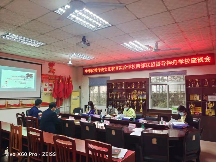 2022年3月31日下午,中山市传统文化教育南部联盟督导组一行四人,莅临神舟学校督导检查传统文化建设工作。神舟学校德育主任韦德敏现场主持接待。