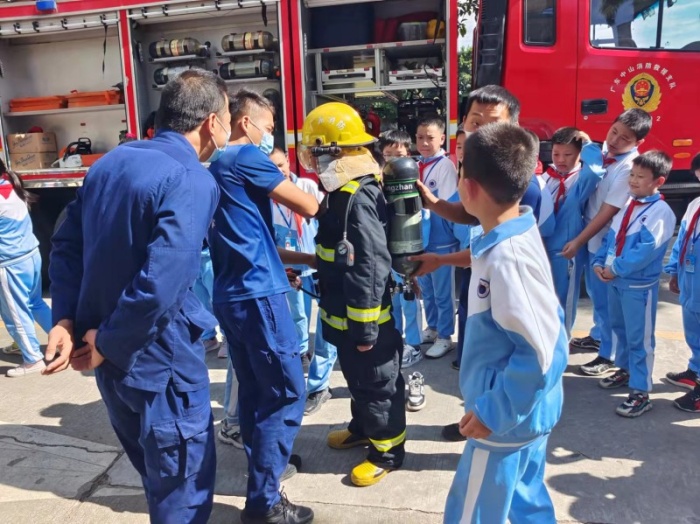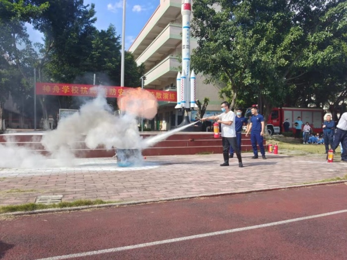 集合完毕后,神湾镇消防救援分局的刘维峰局长,向神舟学校全体师生开展消防灭火的安全教育,并让参与演练的救援分局队员们,给全校师生示范使用灭火器的方法,并教会师生、保安、食堂工作人员和护校队的同志们,如何正确使用灭火器,也让代表们亲手灭火,让他们在操作中掌握灭火技巧。