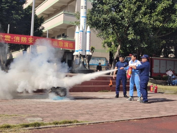 2021年11月11日上午星期四,神舟学校联合神湾镇消防救援分局在神舟学校共同组织举行了一次抗震、消防应急疏散演练活动,本次活动由神舟学校德育处组织 ,神湾镇消防救援分局刘维峰局长、神舟学校党支部书记熊江华、神舟学校常务校长奚水清,神湾镇教育和体育事务中心陈爱文老师到场参加。