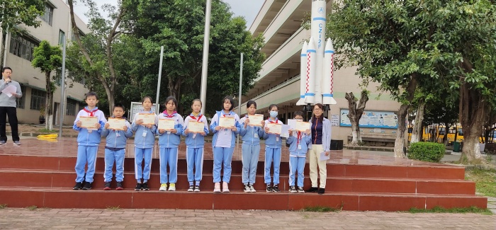 此次竞赛活动结束,老师们认真批阅竞赛答卷,根据学生的成绩,评选出各年级一二三等奖若干名,进行表彰颁奖。在第八周周一升旗仪式后,学校举行了颁奖仪式。教务处李朝辉主任进行了总结发言,对同学们取得的成绩表示了肯定,又提出了需要改进的地方,并鼓励所有同学继续努力学习,不断进步。