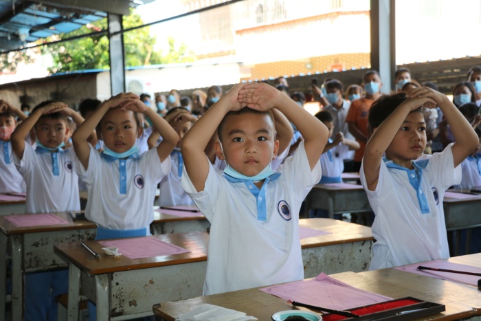 2022年8月28日上午, 伴着清晨的阳光,迎着和煦的微风,又是一年开学季到来,神舟学校为全体一年级的新生们举行了一场庄重的“开笔启蒙仪式”。神舟学校党支部书记、董事、校长熊江华,学校常务校长奚水清、副校长农尚华、副校长高华、各科室行政人员、班主任以及一年级全体学生、家长共计400多人到场参加。