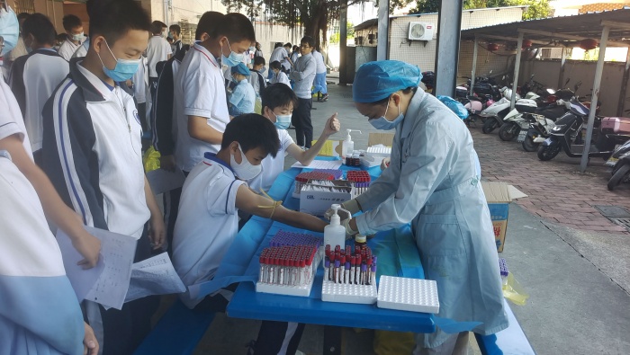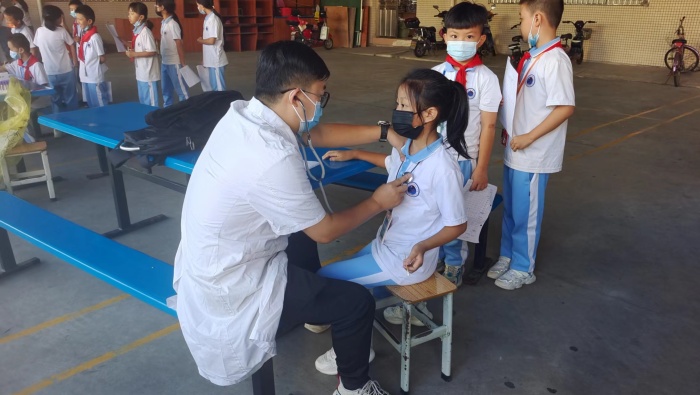 为全面掌握学生健康状况,有效帮助学生提高身体素质,促进学生健康成长,根据中山市教育和体育局的统一要求,10月11日至10月13日、10月17日、11月19日,共计五天,神湾医院10几名医务人员来到神湾神舟学校对全校2400多名学生进行了体检健康检查。本次体检主要有以下项目:测量身高、体重、视力、内科、外科、口腔科、眼科、五官科。