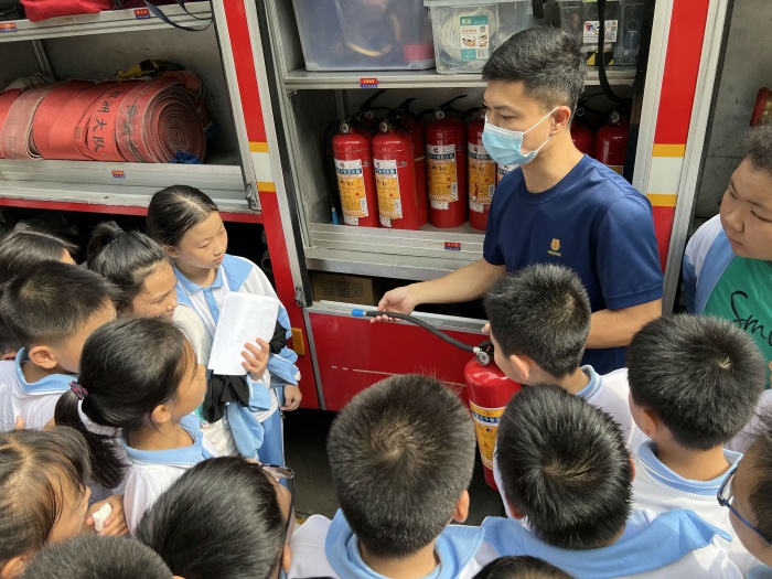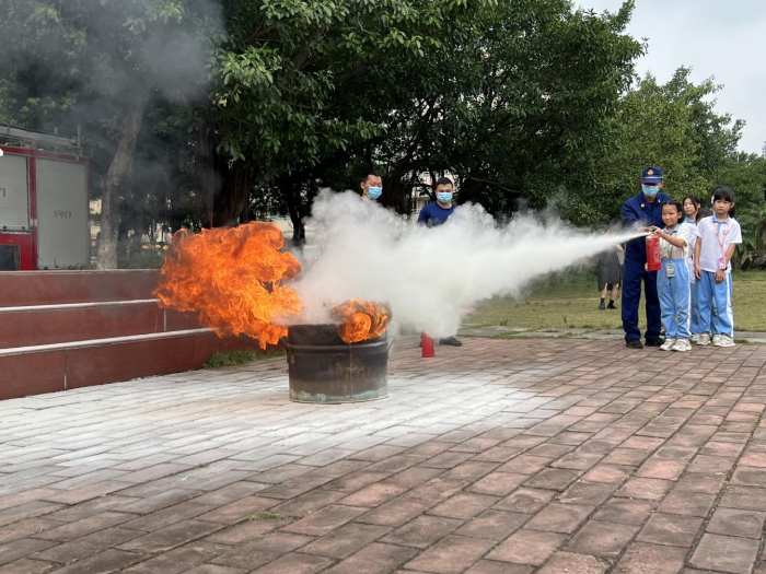 接着,神湾专职消防队队员现场讲解并演示了灭火器的正确操作方法后,学校义务消防队成员和学生代表大胆尝试,亲身体验用灭火器扑灭火种,满满的成就感溢于言表。