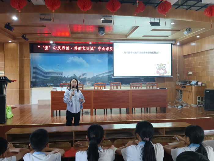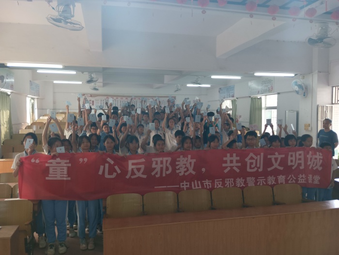 2023年6月2日星期五,神舟学校师生共同参与了一场别开生面的主题教育活动,这是由中山市反邪教协会志愿者公益组织送来的一场以“‘童’心反邪教·共建文明城”为主题的中山市反邪教警示教育公益课堂宣传活动。